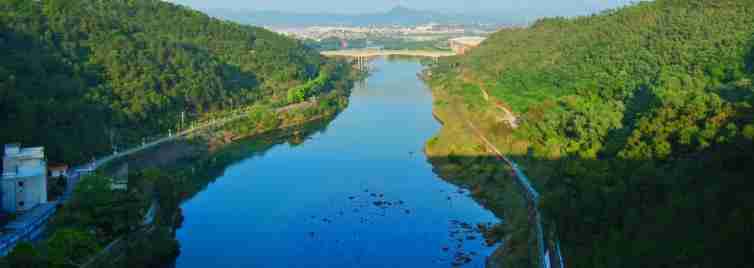 新豐江大壩,為混凝土結構,是世界上第一座經受六級地震考驗的超百米高混凝土大壩。新豐江電廠大壩是社會主義建設初期的奇跡,是人類改造自然、趨利避害的一個典范。如果不是親臨其境,人們很難想象這么一座百米大壩背后是一個“山中海洋”,而腳下卻有一個高樓林立、人影綽約的中等城市。