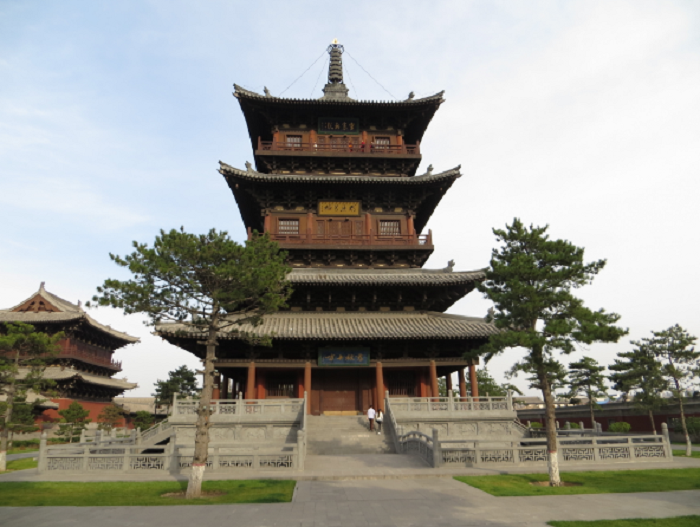 ?迦塔全稱佛宮寺釋迦塔位于山西省朔州市應(yīng)縣城西北佛宮寺內(nèi),俗稱應(yīng)縣木塔。建于遼清寧二年(宋至和三年公元1056年),金明昌六年(南宋慶元一年公元1195年)增修完畢,是中國現(xiàn)存最高最古的一座木構(gòu)塔式建筑,全國重點(diǎn)文物保護(hù)單位。
