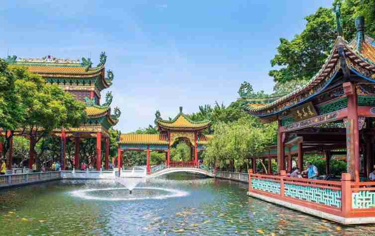 位于廣州番禺的寶墨園,建于清朝后遭毀,于1995年重建,但不管是后修建的還是從之前所流傳下來的建筑,都是具有典型的嶺南特征:山、水、魚、花、草等,無一不散發一種南方園林的神奇氣息,猶如遠離煩囂的古典園林。