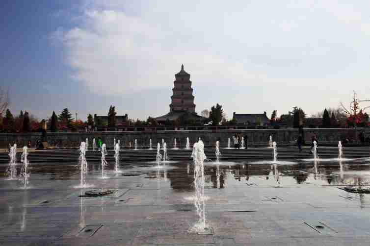 雁塔,說白了就是一座塔。在唐朝修建大雁塔的目的是為了玄奘藏經。有人說,沒有去過大雁塔,就不算到過西安。大雁塔前面有音樂噴泉,十分漂亮,尤其是在夜色的襯托下,更讓人沉醉。想象一下在迷人的夜色下,觀看著音樂噴泉,這樣的美景可以洗刷去我們一天的疲憊。