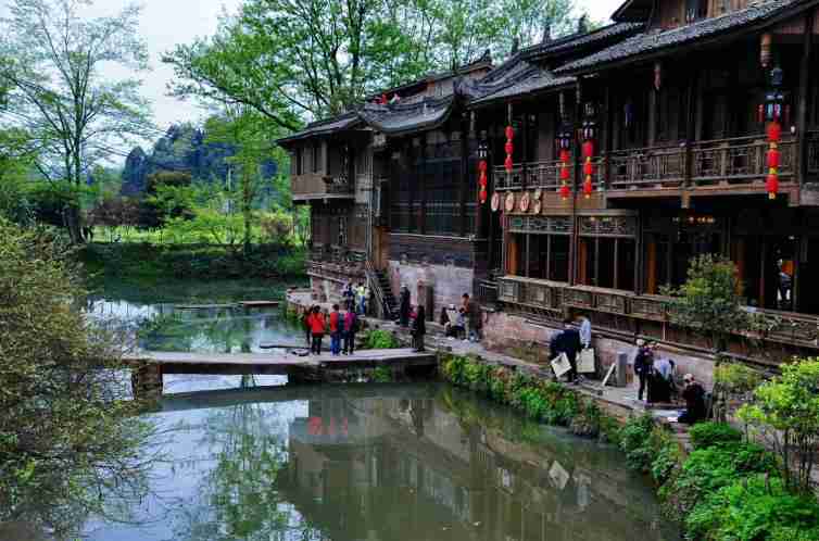 古鎮的建筑格局具有以民居為主的空間特色,建筑風格仍以明清時期的為主。古鎮的街道主要呈“井”子布局,且都不寬,兩邊全是老式的鋪面。古鎮以木結構為主要建筑,寓“井中有水,水火不容”之意,以水制火孽,祈愿小鎮平安。