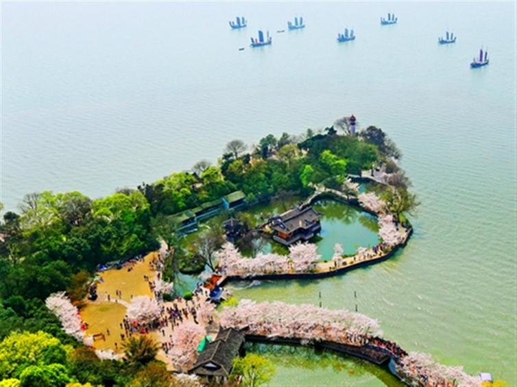 黿頭渚是太湖北部的一處半島,形似浮黿翹首而得名,有“太湖第一名勝”之稱。島上有道教仙宮和道、佛兩教石窟塑像,還有諸多古跡和舊時名流顯貴所建的私家園林??梢杂斡[園林群、泛舟太湖、品賞櫻花,體會郭沫若所贊“太湖佳絕處、畢竟黿頭渚”的意境。景區主要由黿頭渚半島、太湖仙島、中犢山組成。充山大門(正大門,景區東南部)可進可出,犢山大門(景區北部)只出不進。推薦精華游法:游船碼頭-太湖仙島-太湖佳絕處-橫云山莊-黿渚春濤-廣福寺-鹿頂山。另外,萬浪橋是觀賞太湖落日的好地方噢。每年3月中旬至5月初舉辦黿頭渚國際櫻花節,推薦櫻花谷、充山隱秀、長春橋一帶踏青賞櫻。