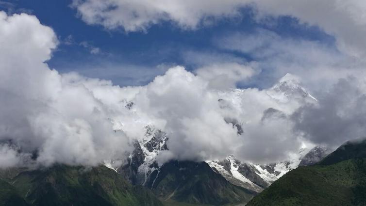 它還有另一個名字“木卓巴爾山”,其巨大的三角形峰體終年積雪,云霧繚繞,從不輕易露出真面目,所以它也被稱為“羞女峰”。南迦巴瓦在藏浯中有多種解釋,一為“雷電如火燃燒”,一為“直刺天空的長矛,還有一為“天山掉下來的石頭”。后一個名字來源于《格薩爾王傳》中的“門嶺一戰”,在這段中將南迦巴瓦峰描繪成狀若“長矛直刺蒼穹”。