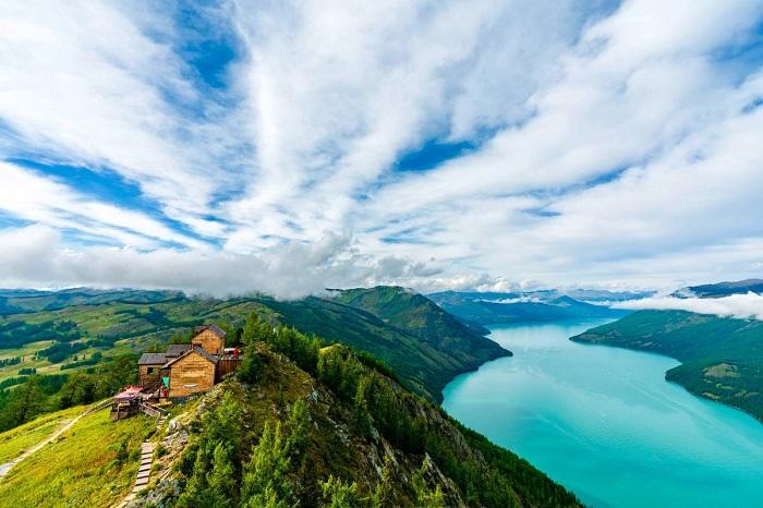 俯瞰喀那斯湖全景的最佳角度,為觀察湖中的“湖怪”而建觀魚臺位于哈納斯湖西岸駱駝峰頂上,本為觀“湖怪”而建,因此得名“觀魚臺”。與湖面的600多米的高度差讓這里成為俯瞰喀納斯湖全景的最佳角度,不僅可將四分之三的湖面盡收眼底,還能觀覽湖周的層巒疊嶂、翠峰倒影。若舉目北望,還能清楚地看到阿爾泰山的最高峰-友誼峰。所以,登觀魚臺就成了來喀納斯游玩的必做之事。