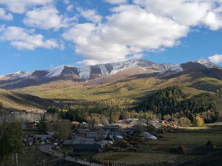 是個原始自然生態與古老傳統文化共融的村落,一切都還保存著幾百年來固有的原始風貌,以圖瓦人為主,位于阿爾泰山山脈的山谷平地上,與哈薩克斯坦的大山遙遙相望,阿爾泰山上密密麻麻的金黃金黃的松樹林一直延伸到白哈巴村里,村民住的木屋和圈養牲畜的柵欄錯落有致地散布在松林和樺林之中,安寧、祥和。