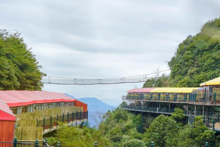 高空蕩橋,抓著繩子做的護欄,在山崖之間隨風擺動,絕對是小伙伴們終身無法忘卻的難得體驗。