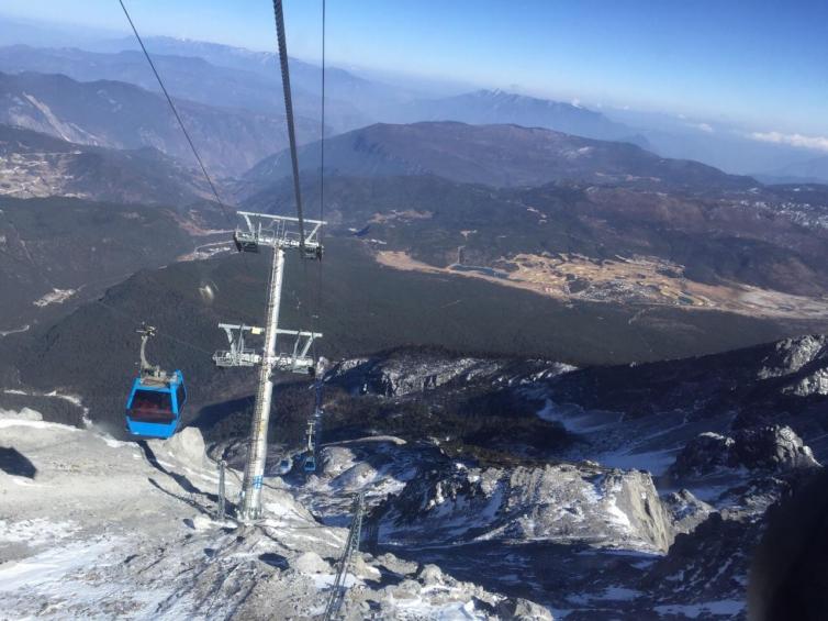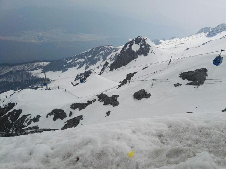 去冰川公園乘大索道,纜車會將你送到4506米的高處,出了索道,是冰川公園的休息站,可以看到最高峰,也能看到整個山脈和對面的景色。如果想要登頂4680米的最高處,剩下100多米的棧道要自己一步步地爬上去。