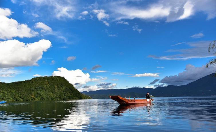 湛藍色的湖水被群山環繞,美妙絕倫的湖光山色間居住著勤勞善良的摩梭人,素有“東方女兒國”之稱。