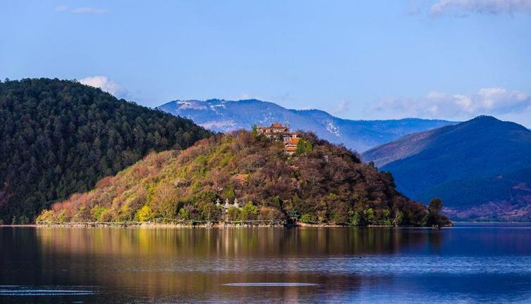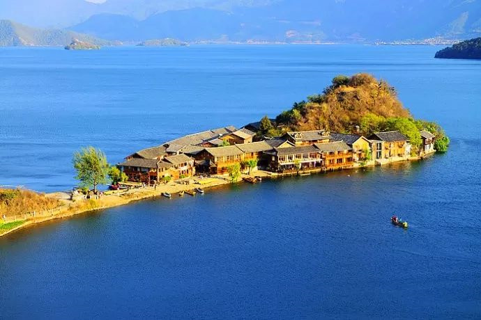 里格島風景秀麗,空氣新鮮,居住在這里的十幾戶摩梭姑娘們不僅聰明能干,而且能歌善舞、善良美麗,有“水中女兒國”的美譽。