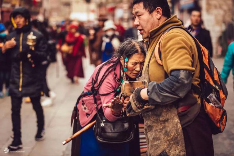 在八角街上行走一定要記住隨著轉(zhuǎn)經(jīng)的藏人以順時針方向行走,否則不僅很難從滾滾人群中突圍,還會被藏族同胞視為褻瀆神靈;