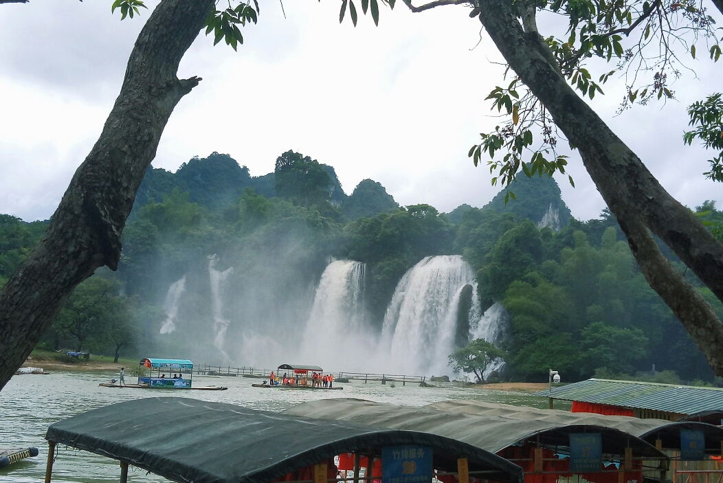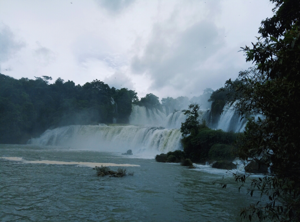 德天瀑布其實景區不大,就是一個瀑布,游玩一個半小時夠了,兩個小時都用不到。可以去坐竹排船,10塊一個人,可以穿過國界,算是出趟國了,然后會去到中國那個瀑布下面給你近距離拍照。右邊的大瀑布是中國的,左邊的是越南的,以河為界。