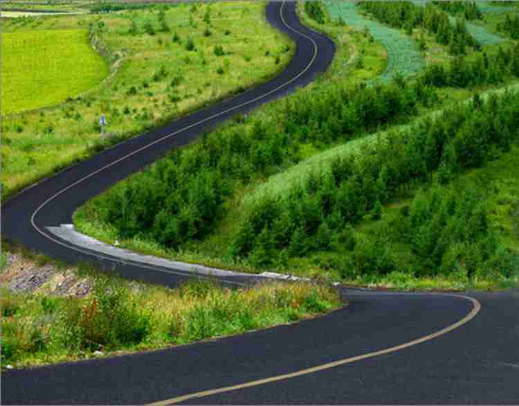 雖然這只是條柏油公路,但海拔也有千米左右,深色柏油路與黃實線向遠處延伸,本身就是一道美麗的風景。