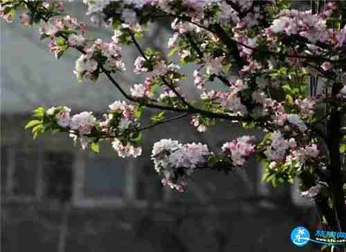 賞花地推薦:天津外國語大學圖書館B座前走廊附近