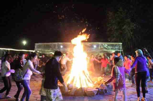 篝火晚會和表演即將開始,我們圍著篝火跳舞吃肉,盡享草原的放縱。傍晚開始草原就要降溫了,有的人都穿輕羽絨了,不過圍著篝火還是很暖的。