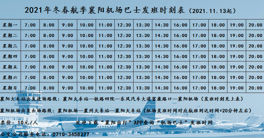 襄陽機場運行路線:運行路線:襄陽機場——襄州火車站——襄陽火車站(機場發班時間對應航班到達時間+20分鐘左右)