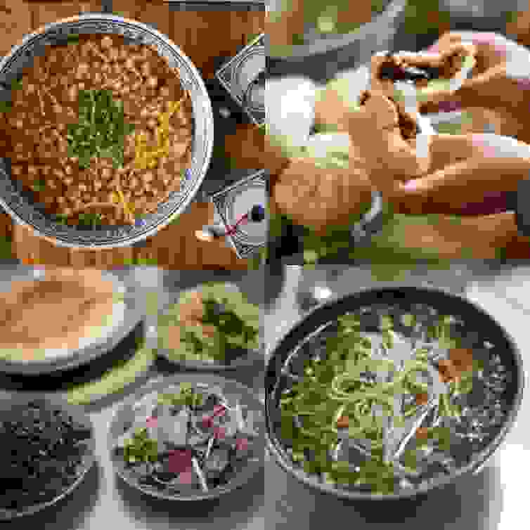 攤黃是宜川的特色美食,制作時用黃米(或小米)磨粉發酵成糊狀置入特制的小砂鍋烙熟,對半折成半月狀即可。食時,加入其它輔料,油香可口。