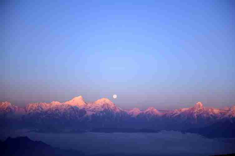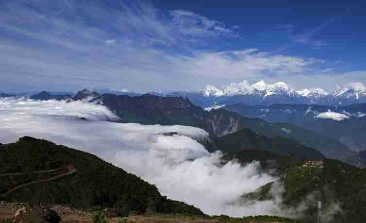 牛背山的云海和雪山是獨特的,很難在其他地方看到云海之上的如此美麗的雪山,太陽從雪山的對面升起,把雪山照得那樣光彩奪目。
