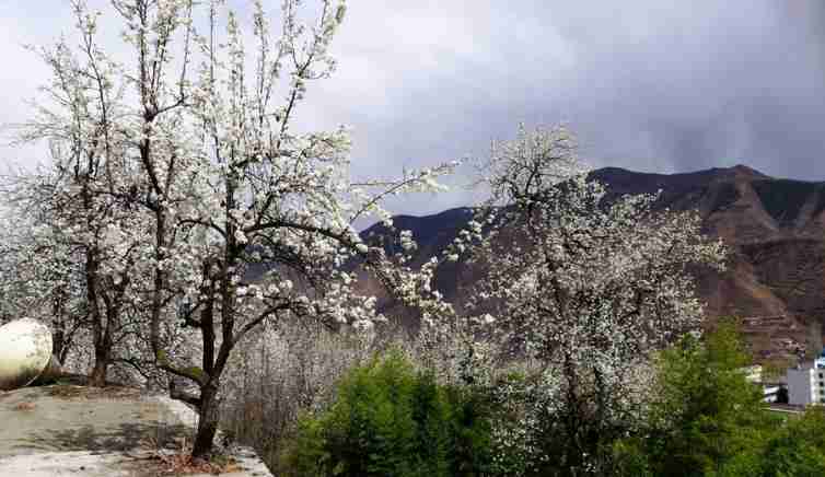 金川的沙耳鄉,是一個秀美的藏寨,寨子道路兩旁,盛開的梨花自然搭成一個天然的屏障,將行人和過往的車輛掩映在鋪滿梨花奇景的世外桃源中。