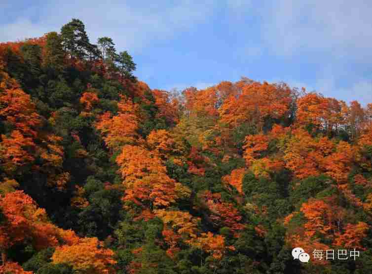 每當秋季來臨,松坪溝就像打打翻了人間的調色盤,這是的樹,有綠色、有紅色、有黃色,層層疊疊,交織在一起,色彩斑斕,美不勝收。