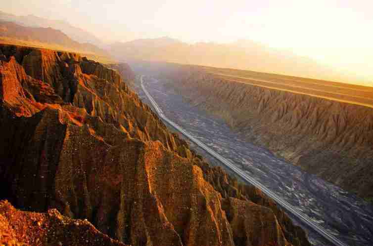 在新疆也是很少人會知道的一個地方,峽谷兩側是從上到下依次排開的河流階地,宛如波濤洶涌的海浪一樣撲面而來,充分顯示了峽谷陽剛的一面。