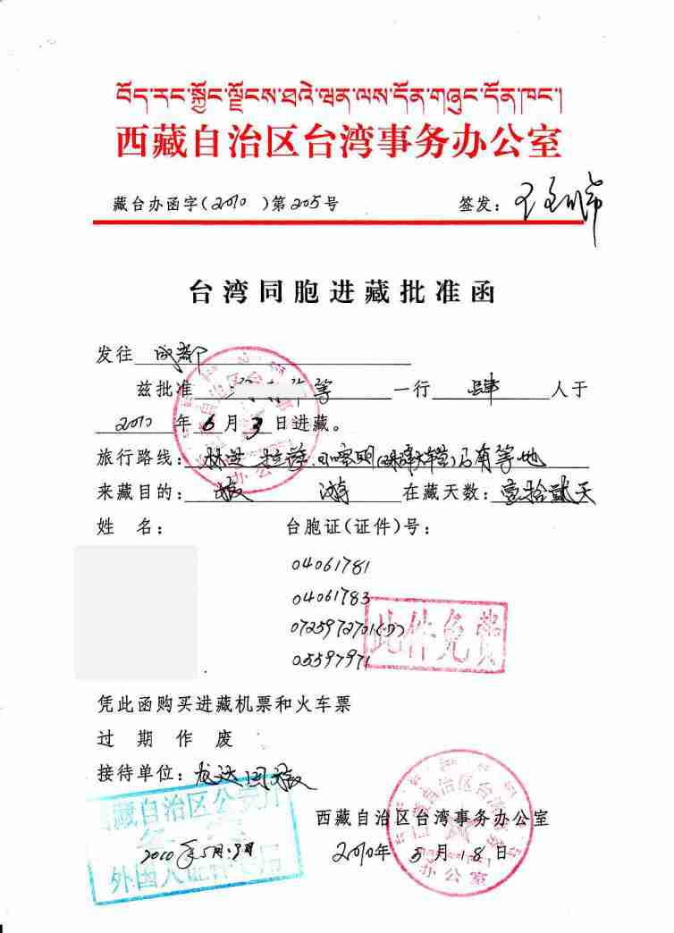 入藏函又叫旅游簽證,是西藏旅游局簽發的關于外國游客和臺灣同胞入藏旅游的批準函。