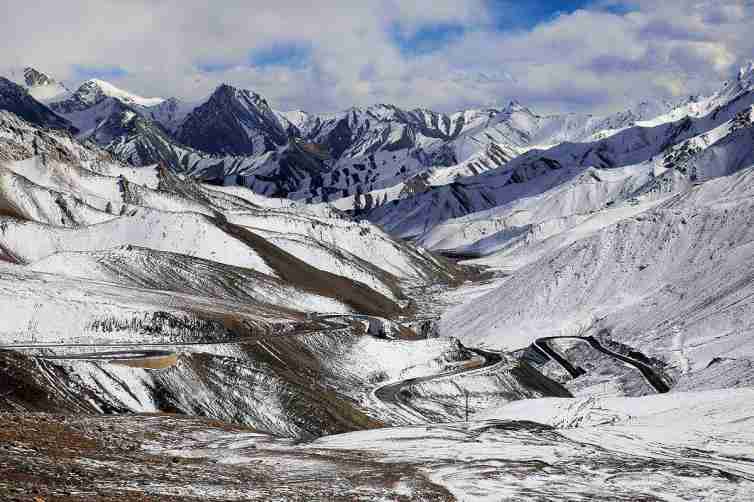 219國道跨越拉斯塘河、葉爾羌河、喀拉喀什河、獅泉河等河道,翻越新疆、西藏之間海拔5000余米的界山等十多個達坂,全線多為一萬無垠的沙漠以及長年積雪的崇山峻嶺,無數路段數百公里找不到伙食。