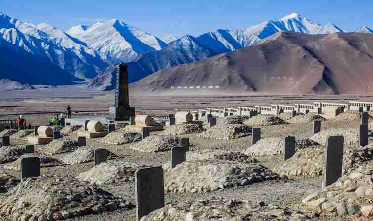 位于新藏線443公里處。海拔4290米。這里是天下海拔最高的烈士陵園,埋藏著215個戰士。途經此地的汽車兵,都要給他們敬杯酒,敬根煙,以表本身的敬意。