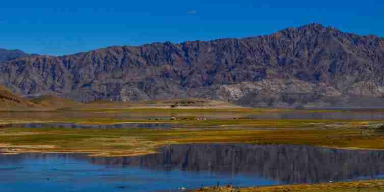這里水不甜,只有咸水。位于新藏線573公里處,海拔4980米,處于喀喇昆侖高原中部,附近雪山圍繞,中心地形平展,氧氣僅有平原地區的40%。多水泊,但因為含氟、堿質水流味苦甘,不可食用,常駐這里的士兵但愿發生甜水,故名甜水海。