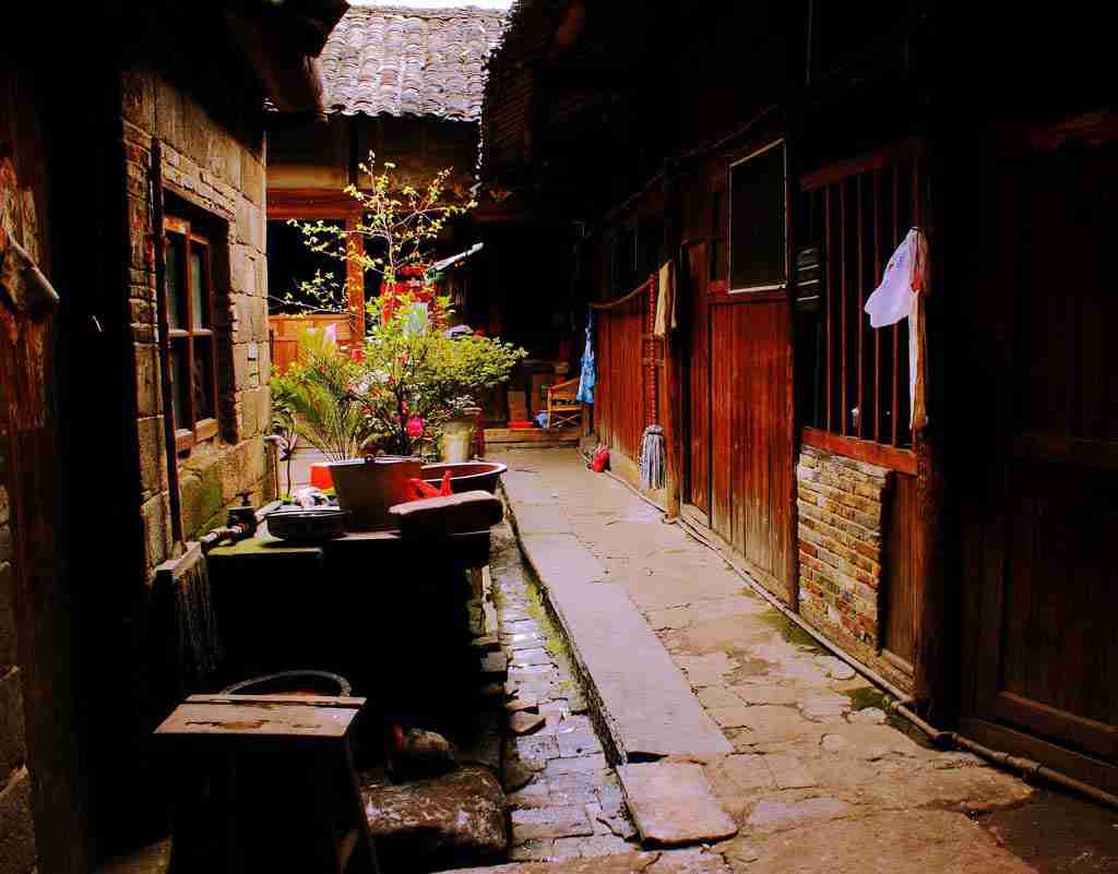 這是一個(gè)歷史古跡和現(xiàn)實(shí)生活并存的地方:古民居排列密集,家家雞犬之聲相聞,老街邊三三兩兩地坐著一些暮齡老人,或磕煙,或呷茶,或打旽,好不祥和。