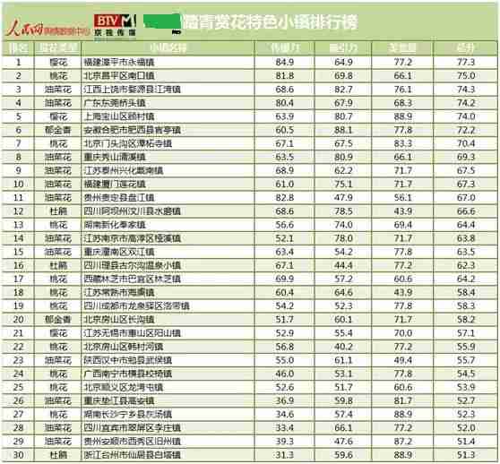 大體的介紹一下這個榜單,老話不是說,“一花獨放不是春,百花齊放春滿園”,大數據比較清晰客觀的展示了全國的踏青賞花情況。