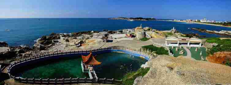 東海島旅游度假區位于全國第五大島――湛江東海島東部,是“湛江新八景”之一。這里面向南太平洋,可觀日出。一條28公里長的海灘,可與意大利的“黃金海灘”媲美。東海島的“人龍舞”有“東方一絕”之稱,令中外游人贊嘆不已。區內惟一的山嶺――龍水嶺,為東海島的最高峰,是湛江市56座火山錐形之一,形似一條龍頭高昂騰天的巨龍。與度假區隔海相望的硇洲島,是火山爆發形成的海島,島上的百年古燈塔是世界上兩座水晶棱鏡燈塔之一。