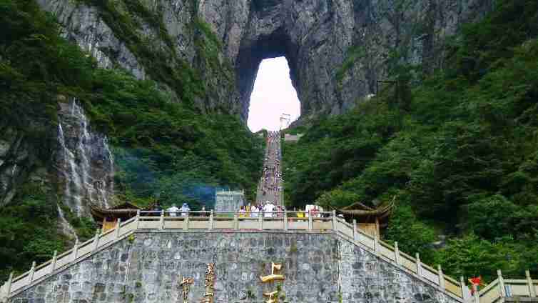 天門山是張家界永定區海拔最高的山,因自然奇觀天門洞而得名。山頂相對平坦,保存著完整的原始次森林,有著很多極為珍貴和獨特的植物品種,其間古樹參天,藤蔓纏繞,青苔遍布,石筍、石芽舉步皆是,處處如天成的盆景,被世人譽為世界最美的空中花園和天界仙境。