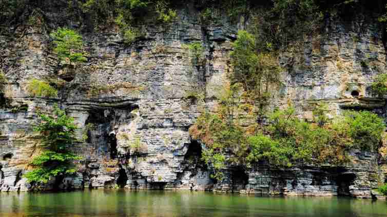 在陽光的照射下,張家界大峽谷的水呈現藍色。