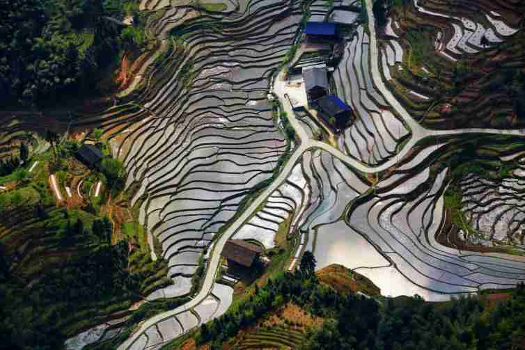 紫鵲界梯田位于中國湖南省婁底市新化縣西部山區,是世界灌溉工程遺產。她周邊的梯田達8萬畝以上,核心景區有2萬多畝,正在申報吉尼斯記錄。漫山遍梁,層層重疊,近看阡陌縱橫,仰觀梯田整齊如登天云梯。紫鵲界梯田是南方稻作文化與苗瑤山地漁獵文化融化揉合的歷史文化遺存,也是全球十大最美梯田之一。