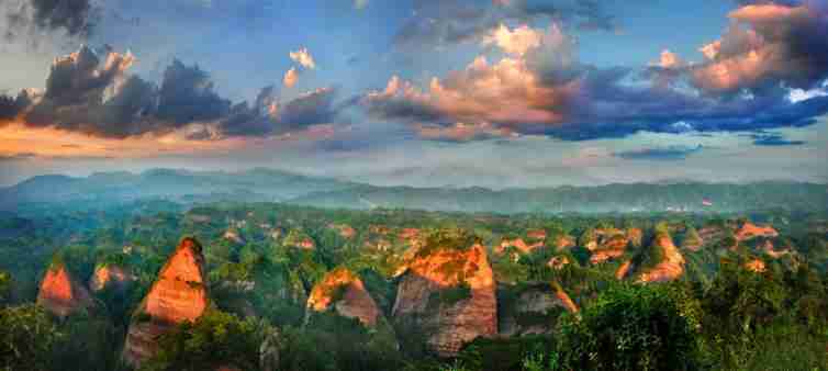 萬佛山風景區,有保存較為完好的原始次森林和松濤森林風光,有馬田鼓樓、百衣觀、回龍橋等人文景觀,是我國乃至世界范圍內發現的品相較為罕見的特大型丹霞地貌群,這里“萬座丹峰擁翠環”,融峰、林、洞、水于一體,集雄、險、峻、秀于一身,一步一景,被譽為“綠色萬里長城”。