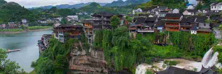 一部叫《芙蓉鎮》的電影讓取景地湘西永順縣芙蓉鎮走進了世人的視野。片中,悠悠河水碧波、古舊的青石長街、曲折幽深的小巷、臨水土家吊腳樓,給觀眾的腦海中留下一副柔美畫卷。芙蓉鎮三面環水,瀑布穿鎮而過,有“掛在瀑布上的千年古鎮”的美譽。每到豐水期,飛瀑水流湍急,急瀉而下,聲勢浩大,又與飛虹交相輝映,五彩紛呈,這樣的景觀,在中國都可謂獨一無二。