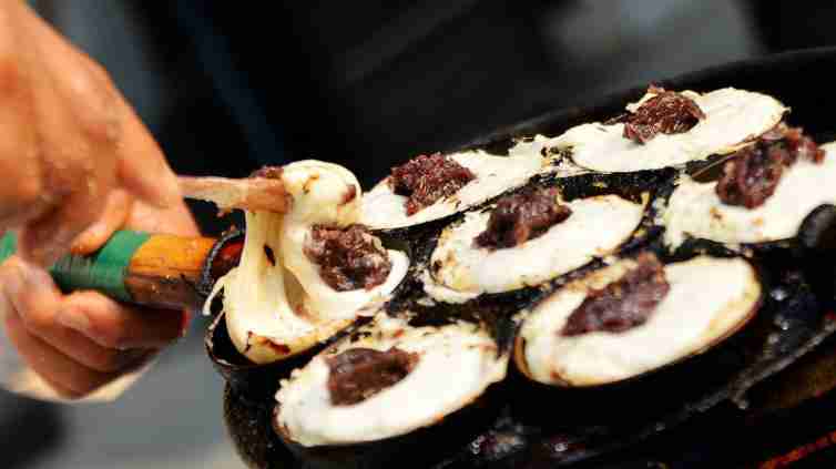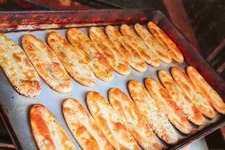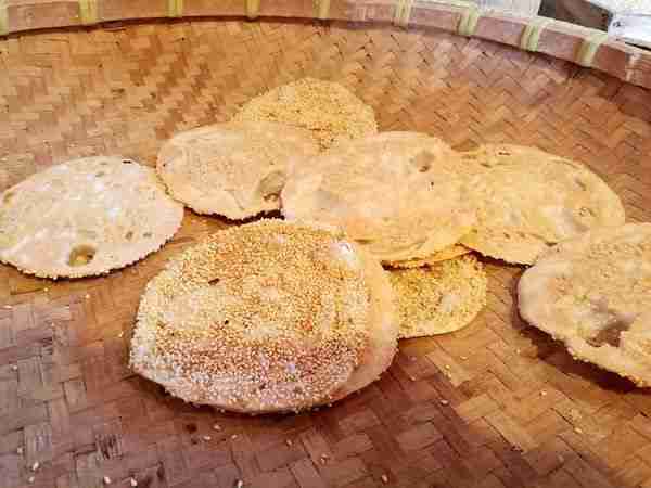 油紙包裝,紅紙封面,用草繩系著的富安燒餅,透著濃濃的江南古味。雖是一方燒餅但工藝相當復雜,買個餅重12克左右,號稱天下最薄的燒餅了。面粉上撒上白芝麻,在兩個對著的平底鍋里烘制,只要10秒鐘就出爐,口感純粹到薄香脆三個字可以形容。富安燒餅鋪開在著名的富安橋上,只此一家,別無分號。當年沈萬三出海貿易在海上的主食就是它!