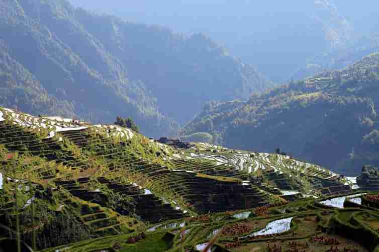 加榜梯田在4~11月間田里都有水, 4、5、6、9、10月的梯田最適合拍攝,10月中旬自然是好時節(jié),梯田里的稻谷還有部分沒有收割完,金黃色的稻谷與銀色的水面交相輝映煞是好看!