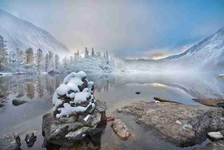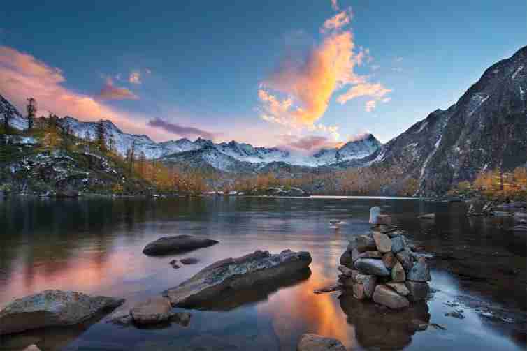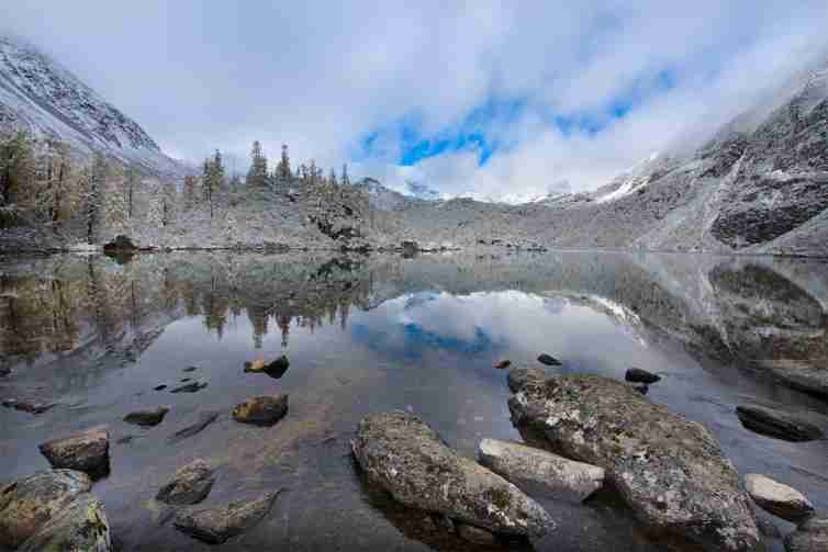 拍照的時候一定要透過湖水拍,因為湖水清澈見底,能倒影出對面山、樹、藍天的倒影~湖泊旁一株株紅杉挺撥而遒勁,茂密而干練的針葉由綠變黃,公路兩旁的落葉也是別有一番風味。