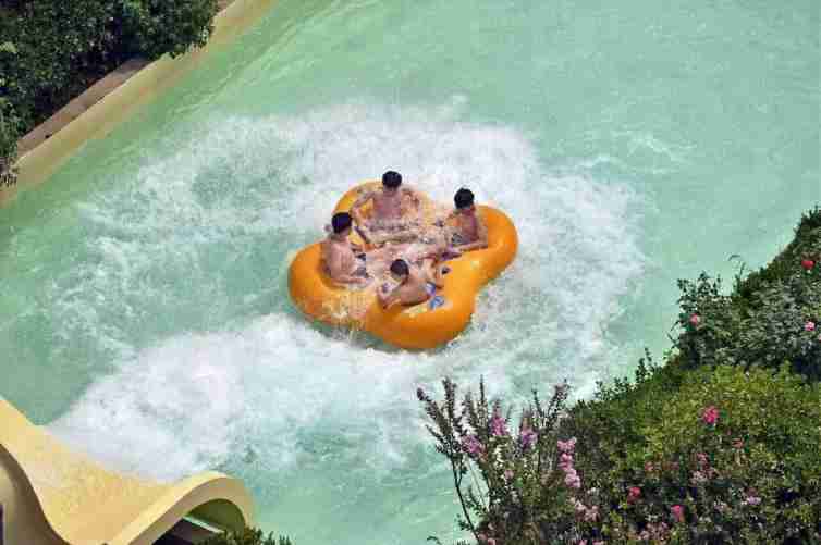 是一座將近千米長(zhǎng)的水上過山車,其刺激程度堪比歡樂谷的“谷木游龍”。園內(nèi)還有國(guó)內(nèi)最大的“超級(jí)水寨”,可同時(shí)容納2500人戲水。當(dāng)然,水上滑滑梯也是必不可少的,在 “彩虹滑道”上,游客們被急流帶著一路向前,最后如高樓墜落般直沖而下……當(dāng)然在這里我們要友情提示大家,游玩要注意安全,尤其年齡小的小朋友們,務(wù)必在家長(zhǎng)監(jiān)護(hù)下玩耍哦,小編姐姐曾經(jīng)在這里差點(diǎn)玩閃了腰……那叫一個(gè)刺激,嗷~~
