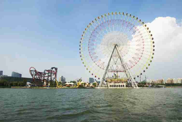 在高120米的水上摩天輪上,俯看蘇州蘇州摩天輪樂園位于金雞湖東岸,園中最耀眼的是水上摩天輪坐上摩天輪,可以俯看摩天輪樂園全景和金雞湖,摩天輪轉(zhuǎn)一圈約25分鐘,座艙內(nèi)裝有空調(diào),環(huán)境舒適。園中建筑設計成歐式城堡的模樣,加上摩天輪,碧波蕩漾的金雞湖。