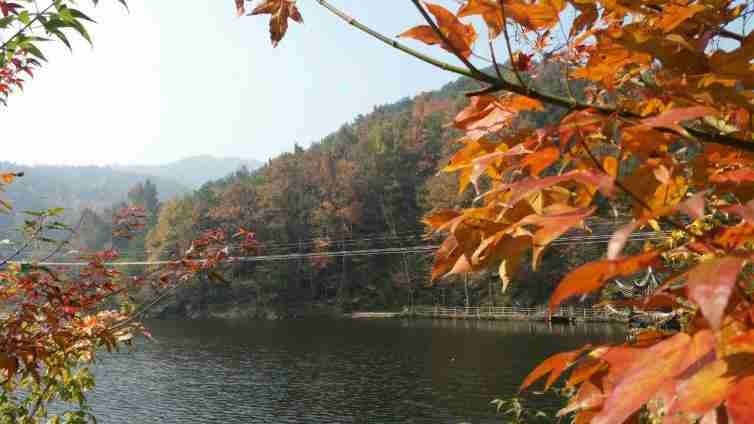 黃陂清涼寨,素有武漢最美山村之稱。秋天,風輕云淡,山上各種樹種呈現出不同的顏色,層林盡染,繽紛斑斕,繪就清涼寨獨特而濃郁的秋韻。特別是每年10月下旬到11月下旬,因海拔高差和晝夜溫差形成的獨特地理氣候條件,景區"楓"情萬種,三角楓、五角楓、七角楓、八角楓等楓樹,以及鳥桕樹和槭科類等多樣秋季紅葉樹種達3000余畝,而紅葉最美處當數"酒醉湖畔的楓林灣"。