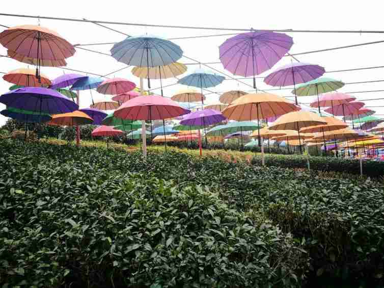 一棟棟云霧繚繞的彩色房屋,錯(cuò)落有致呈現(xiàn)在翠色欲滴的茶園間。在一片碧綠間,這些彩色的房屋就像夜空中的星星,十分美麗。