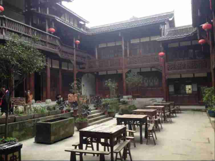 古色古香的四合院落門坊柱壁多雕飾精美,四角飛檐高翹,院落深深,為典型的巴蜀古鎮風韻。