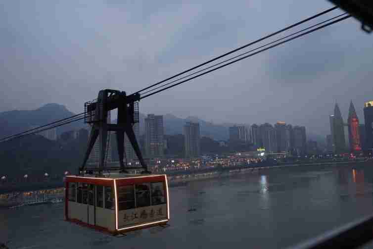 長江索道一個轎廂中能容納50人,轎廂四面玻璃全透明,可以清楚到看到長江兩岸的景色,這也成為游客觀看夜景的另一種方式,晚上夜景很美,不過前提是天氣要好。