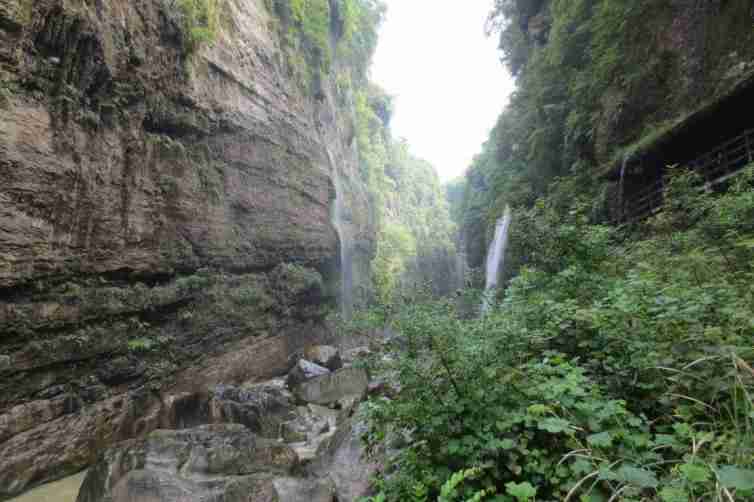在當地人口中,它有另一個名字叫渝黔溝。這個峽谷深達千米,寬度最窄卻不過5米,峽谷兩側掛瀑叢生,在這里仰望天空,一瞬間就能感到人類的渺小,令人震撼。這里還沒有被開發為景區,進入的方式只有徒步,難度并不是很大,收獲的美景卻是翻倍的,如果偶遇雨天,整個峽谷被水汽煙霧環繞,仙境也不過如此。