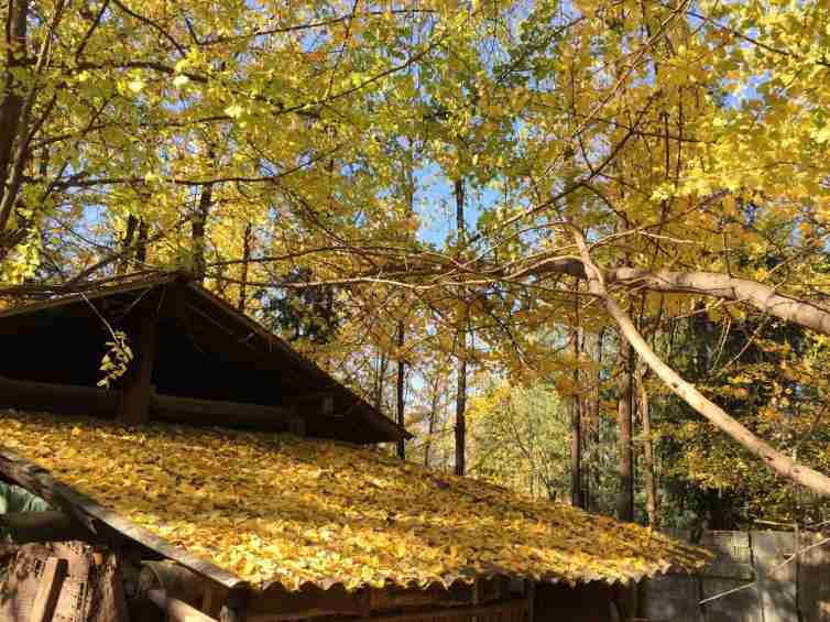 每年的十月下旬到十二月中旬左右,是銀杏村黃金期。這個時候的銀杏村,房前屋后、瓦片上、小路上、到處是一片金黃。