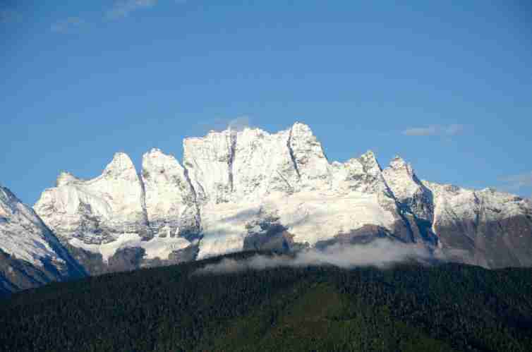 坐落在香格里拉地區,意為“金子之花朵”,主峰海拔 5396 米,為云南省境內第四高峰。