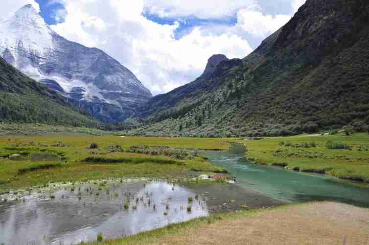 稻城亞丁的三神山由仙乃日、央邁勇、夏諾多吉三座雪峰組成,分別代表觀音菩薩、文殊菩薩、金剛手菩薩。