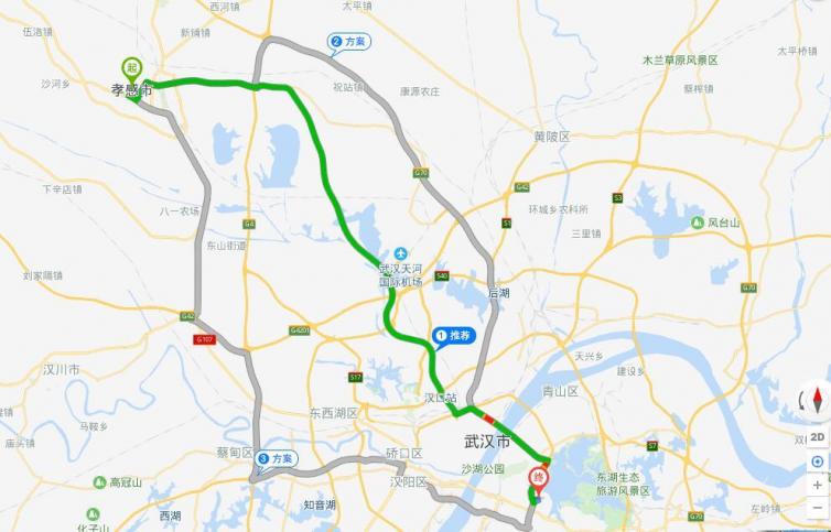 自駕路線:孝漢大道-S19機場二高速-香港路-武漢長江隧道-沙湖大橋-東西南路